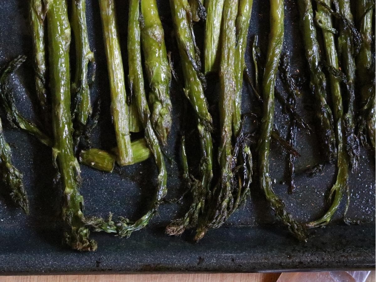 - Continue to roast asparagus for 10-15 more minutes until done.