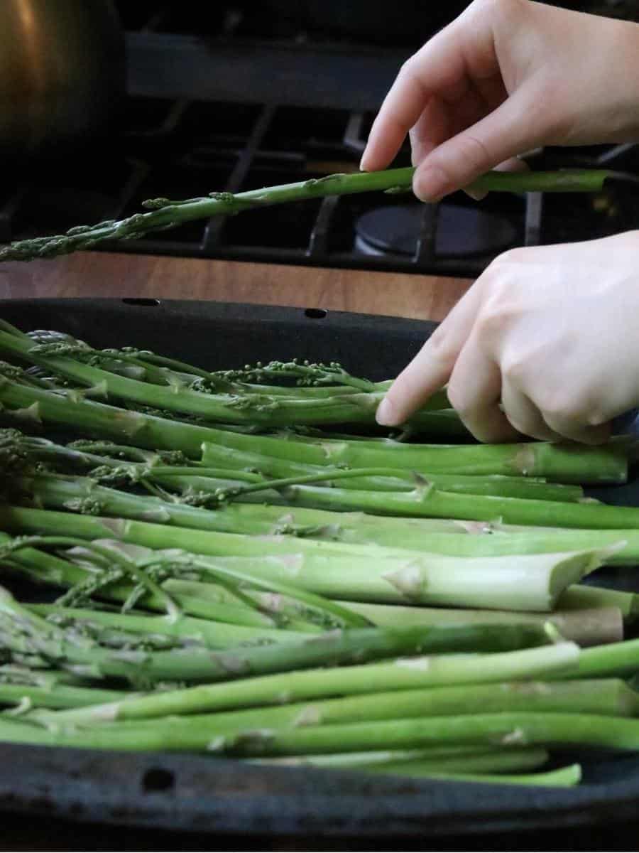 Use thicker asparagus spears if you like them crisp tender since it’s easier not to get those overdone. But, if you like your asparagus soft and crispy then use thinner spears.