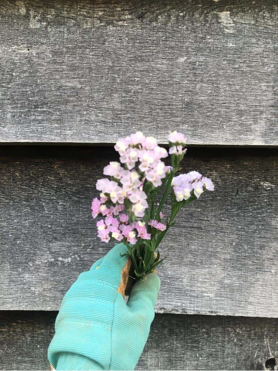 8. Statice– These tiny papery blossoms are long lasting and have excellent color retention. They add an airy delicate touch to dried arrangements. They weren’t super producers, so I recommend planting more than you think you’ll need.